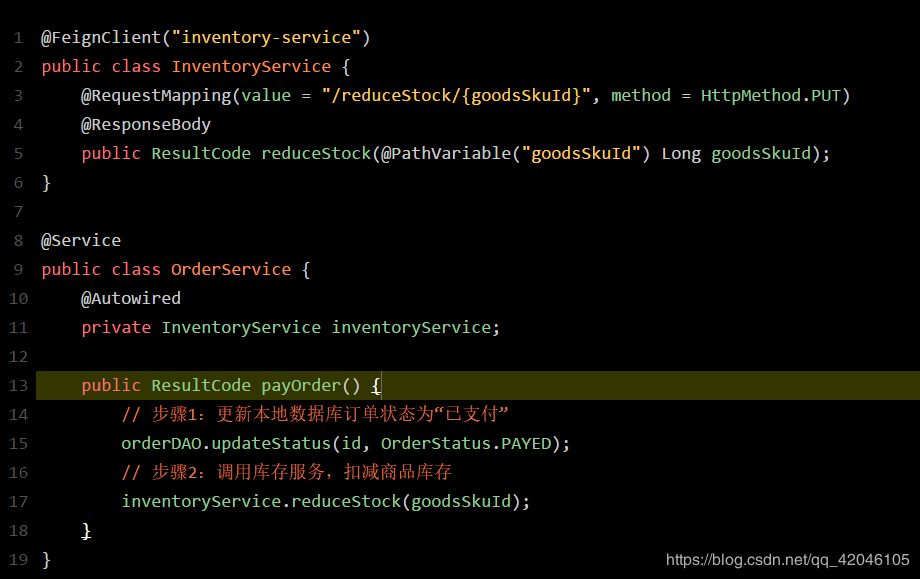 既然如此,那怎么办呢?别急,Feign早已为我们提供好了优雅的解决方案。来看看如果用Feign的话,你的订单服务调用库存服务的代码会变成啥样?